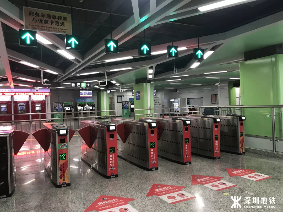 在兩類新卡過閘功能的上線初期,深圳地鐵全線網(wǎng)每個車站設(shè)置了“兩進(jìn)兩出”四臺閘機支持金融IC卡及全國交通一卡通的使用,而在車公廟、福田、老街、后海等客流大站則設(shè)置了至少10臺閘機。