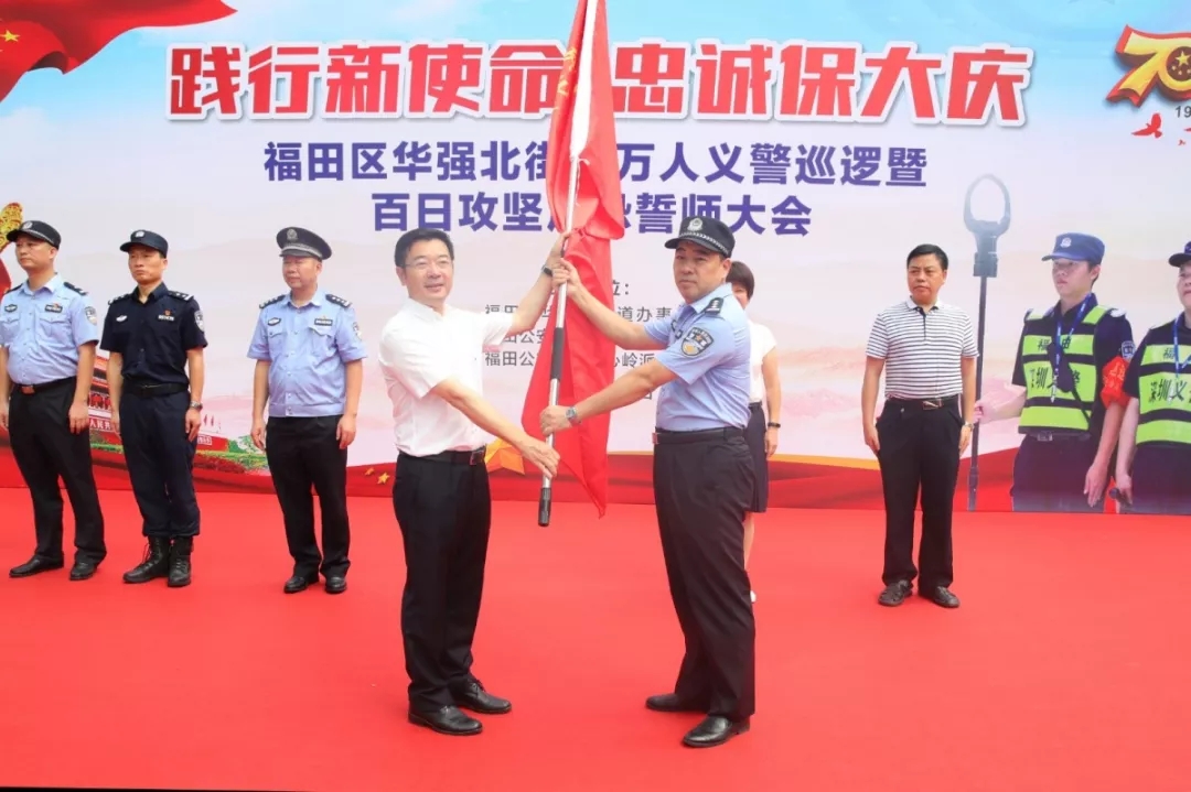 在大會(huì)上,福田公安分局副局長譚慶彬表示:“組織義警隊(duì)伍開展大巡邏大防控,重點(diǎn)在于拓寬人民群眾參與社會(huì)治安防控渠道,最大限度挖掘群防群治社會(huì)資源,形成多層次、全方位的群防群治網(wǎng)絡(luò),進(jìn)一步實(shí)現(xiàn)各類警情持續(xù)下降、治安難點(diǎn)有效整治、立體防控更加完善、安保維穩(wěn)平穩(wěn)可控、人民滿意度不斷提升的工作目標(biāo)。我們要最大限度地動(dòng)員和實(shí)現(xiàn)社會(huì)力量參與平安建設(shè),筑牢社會(huì)治安防控體系,以制度化、規(guī)范化、精細(xì)化、專業(yè)化的管理,鍛造出一支拉得出、沖得上、打得贏的華強(qiáng)北‘義警’鐵軍,為福田社會(huì)經(jīng)濟(jì)發(fā)展?fàn)I造更加安全、平穩(wěn)、有序的生產(chǎn)、生活環(huán)境?!?/p>