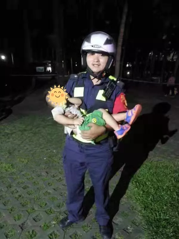 中秋夜21時許,深圳市公安局福田分局機動訓(xùn)練大隊四中隊隊員黃俊豪、施裕楓在蓮花山巡邏時,發(fā)現(xiàn)一名兩歲左右的幼童和父母走散了在哭著找媽媽,因小孩年齡太小無法獲取父母的聯(lián)系方式,兩名隊員便一直守護著孩子并在附近尋找其父母,直到找到其父親后送還小孩。