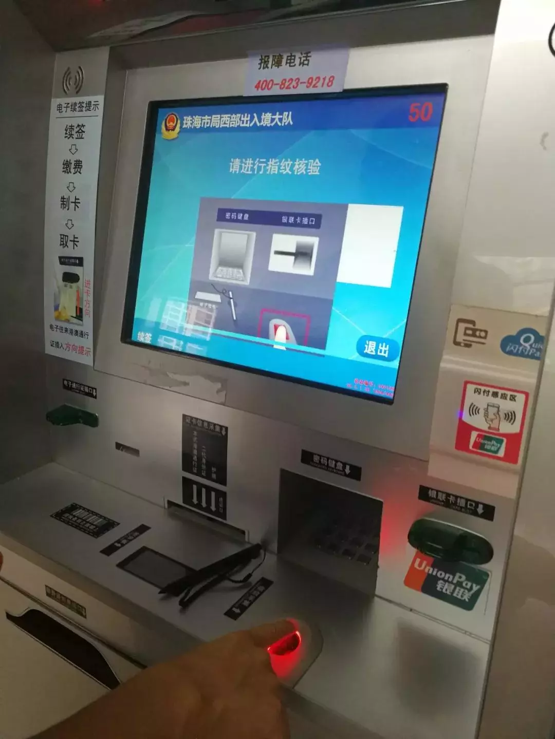 對于無法識別指紋的老人和小孩,接待大廳還設(shè)有可“人臉識別”自助辦理簽注的機器,符合條件的市民一般可以通過人臉識別進行身份驗證。