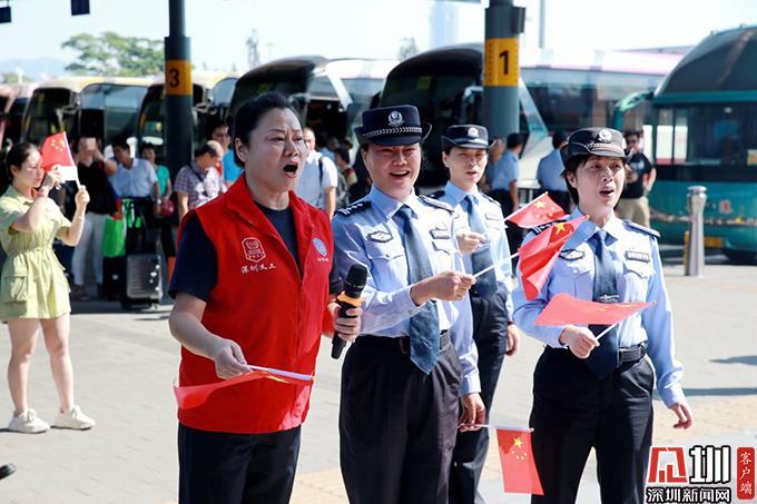 大會現(xiàn)場,一面巨幅國旗在12名邊檢民警的護衛(wèi)下,在會場正中位置迎風(fēng)拂動;國旗兩側(cè),由深圳灣邊檢站民警、地方公安民警、駐地武警官兵、口岸輔警及口岸U站志愿者組成的方陣依次排列。