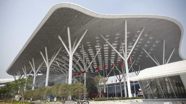 深圳國際會(huì)展中心是深圳建市以來最大的單體建筑。圖為展館外景。
