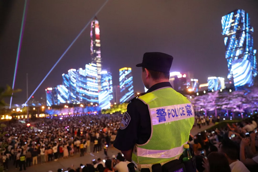 此外,福田公安分局根據(jù)市民中心和蓮花山頂廣場的每日人流負荷情況實時調(diào)整,及時協(xié)調(diào)城管調(diào)控?zé)艄庑悴コ鰰r間并加演,避免人流停滯,緩解疏導(dǎo)壓力。值得一提的是,為了方便市民夜間行走,觀賞區(qū)特地“開辟”了幾條新的應(yīng)急道路,并在所有“黑暗死角”都加裝了應(yīng)急燈。福田公安分局指揮處處長張保軍表示:“在安保警力多次實地巡查后,及時發(fā)現(xiàn)問題并整改、疏通光線不足及堵塞人群的道路,使市民們在觀看完燈光秀后能夠更加安全、快捷地離開。”除此以外,在人流密集的燈光秀現(xiàn)場,孩童走失、物品遺失的情況也有發(fā)生,安保人員不斷地通過廣播尋人、尋物,進行實名登記,盡心盡力地為市民、游客解決切身難題。