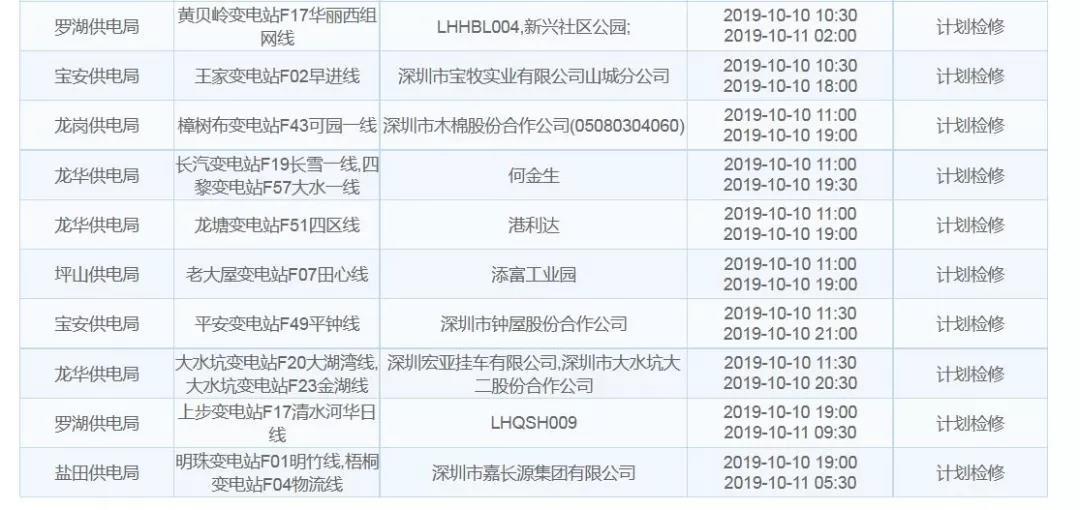 因供電局計(jì)劃?rùn)z修,10月9-10日深圳部分地區(qū)將停電,涉及多個(gè)小區(qū),包括新苑小區(qū)、南山花園、云峰花園等。具體停電信息如下↓↓
