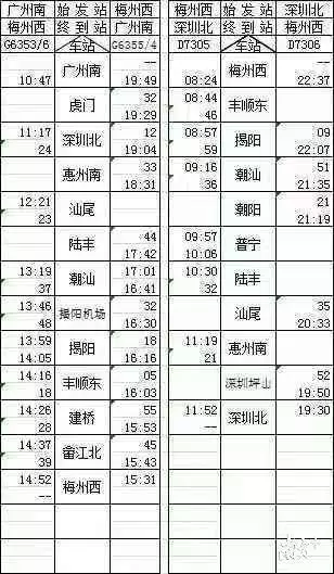 其中,梅州往返廣州12趟,往返深圳10趟,往返潮汕站8趟,往返汕頭8趟,往返珠海、廈門、宜昌各2趟。