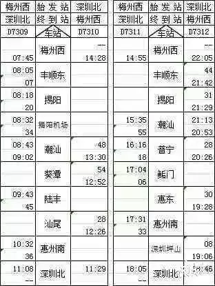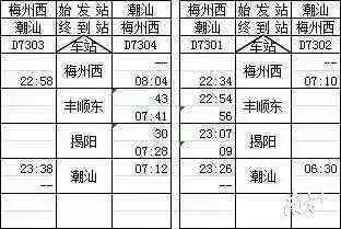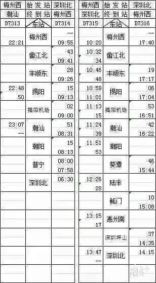 梅州西、畬江北、建橋、豐順東、揭陽、揭陽機場、潮汕站以及運行區(qū)段僅在上述車站范圍內(nèi)的動車組列車。