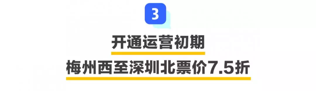 在開通運營初期,行經(jīng)梅汕鐵路的各趟列車,將根據(jù)不同運行區(qū)間、運行時間和停站情況實行,6折、7.5折、8折、8.5折、9折五種折扣票價。