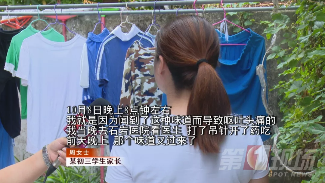 周女士的孩子在該校讀初三,在聞到類似“燒塑膠品”的味道后,還出現(xiàn)了嘔吐、頭暈、嘴麻木的癥狀,不得不去醫(yī)院打吊針。