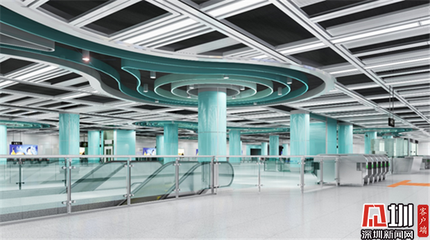 l環(huán)環(huán)相扣部位同樣采用了層疊手法,一層一步高,并加以色彩的點綴,逐級漸變,在統(tǒng)一中求變化,突出亮點,打造交通核心視覺點。