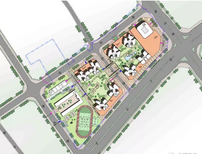 地塊機動車出入口位置由丹荷大道調(diào)整至規(guī)劃南寶路,并在積谷田路新增一個幼兒園機動車出入口。