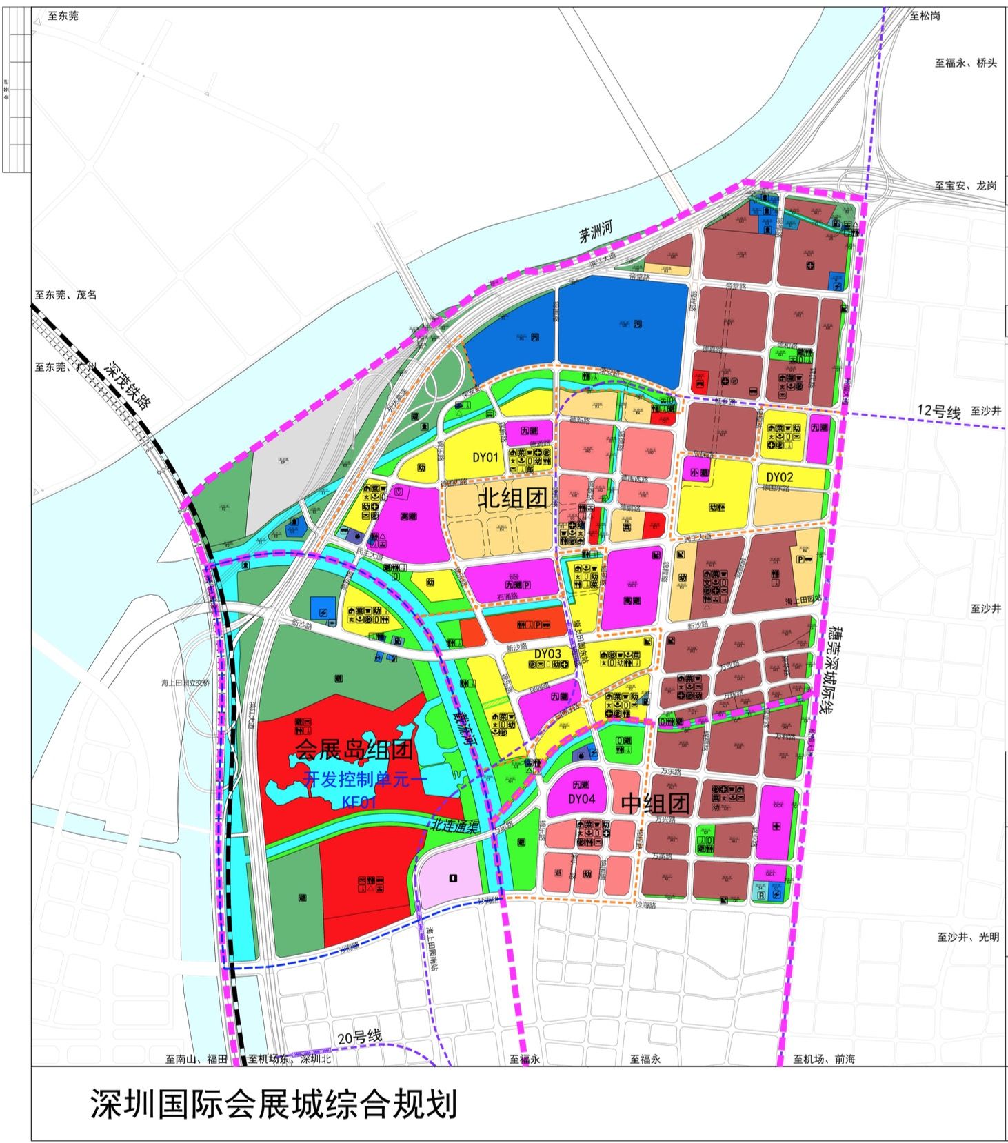 “深圳國(guó)際會(huì)展城”范圍北抵茅洲河、東至松福大道、南臨福永河、西側(cè)主要以廣深沿江高速公路為界,并包括規(guī)劃寶安綜合港區(qū),范圍共計(jì)22.57平方公里,規(guī)劃區(qū)劃分為三個(gè)片區(qū):國(guó)際會(huì)展中心片區(qū)、海上田園片區(qū)和寶安綜合港區(qū)。