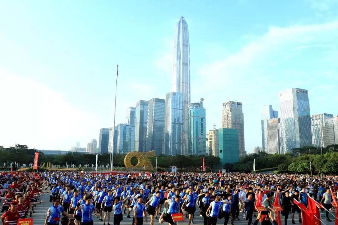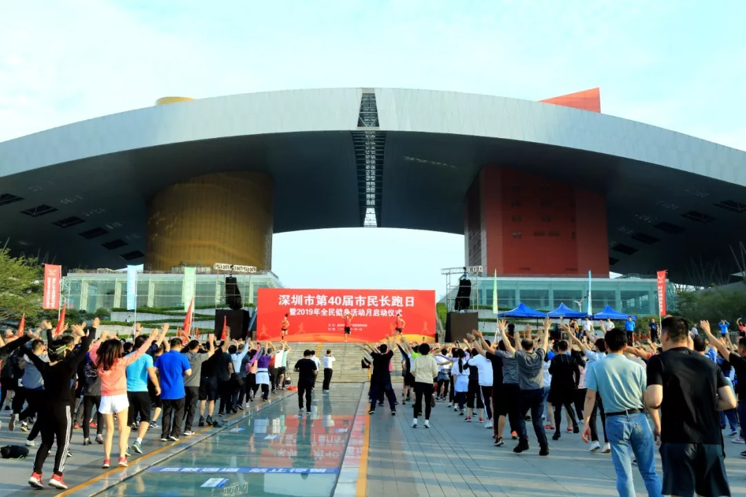 11月1日上午,深圳市第40屆市民長跑日暨2019年全民健身活動月啟動儀式在市民中心廣場舉行。來自各有關單位干部職工約2000人從市民中心起跑,沿著福中三路、民田路、福中一路、金田路完成了3公里晨跑,拉開全民健身活動月序幕。