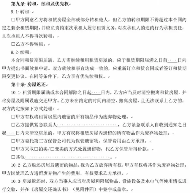 4、增設承租人下落不明時,出租人對租賃房屋內(nèi)的遺留物處理條款。實踐中,存在很多承租人無力支付租金時斷絕與出租人聯(lián)系的情形。為解決出租人無法聯(lián)系承租人時對租賃房屋內(nèi)遺留物的處理問題,新版合同增設承租人未按約定交還房屋且下落不明時遺留物的處理條款,由雙方當事人在簽訂合同時就此問題協(xié)商一致,避免出租人遭受無法收回房屋導致房屋使用價值無法實現(xiàn)的損失或者因自行處置遺留物引起糾紛、面臨侵權責任的風險,有效解決承租人下落不明時租賃房屋內(nèi)遺留物的處理問題。