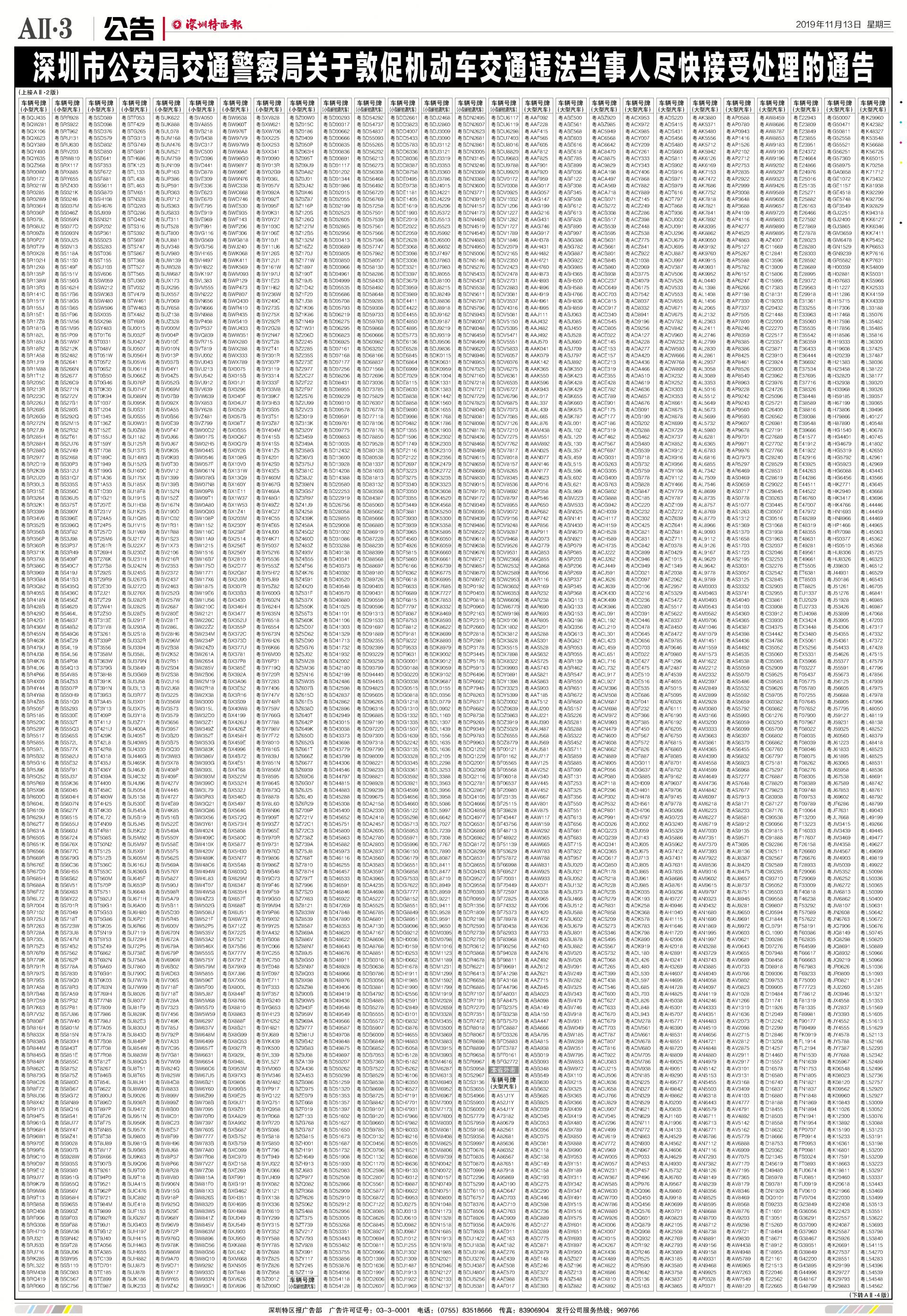 今年7月至10月初,全市機動車被“電子警察”抓拍交通違法行為1342781宗,深圳交警通過多種方式進行交通違法行為告知,但截止至目前仍有部分機動車的非現(xiàn)場交通違法未及時處理。