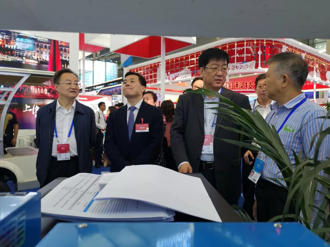 新疆維吾爾自治區(qū)政府副秘書長許龍章、科技廳廳長張小雷、科技廳副廳長劉智敏參觀新譯展區(qū)