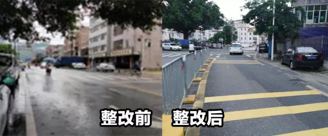沙坑二路學(xué)校周邊路口整改前后對(duì)比。在今年新開(kāi)學(xué)的竹坑、錦龍等學(xué)校周邊也完善了減速帶、限速標(biāo)志、反光鏡等設(shè)施,不但限制了車(chē)輛行駛速度,也消除了路口交會(huì)處的視覺(jué)盲區(qū)