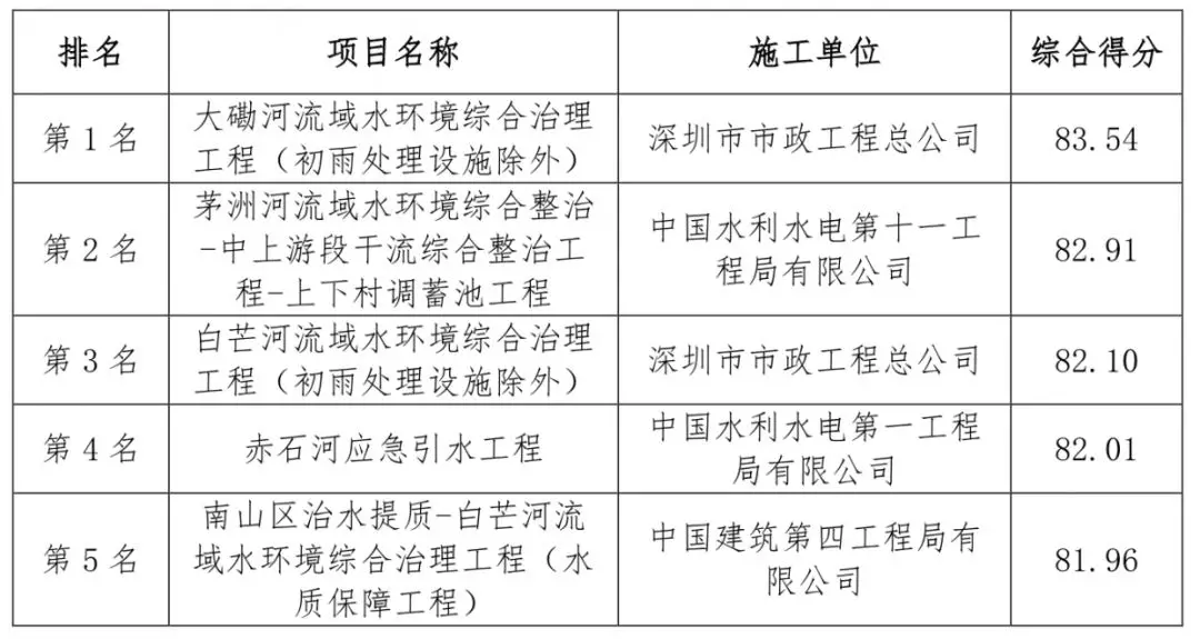 您關(guān)注已久的深圳市水務(wù)工程質(zhì)量安全評(píng)估通報(bào)已出爐!