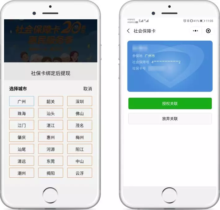未綁定電子社??ǖ挠脩簦枰x擇所在地,并授權(quán)關(guān)聯(lián)社??娮幼C照。