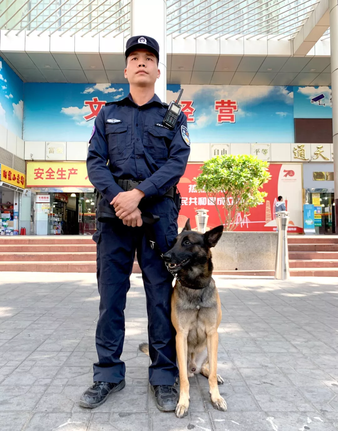 1999年出生、剛滿20歲的岳文健,是福田分局機訓(xùn)大隊警犬中隊的一員。去年剛畢業(yè)的他,在今年3月加入警犬中隊,成為隊伍中最小的隊員。