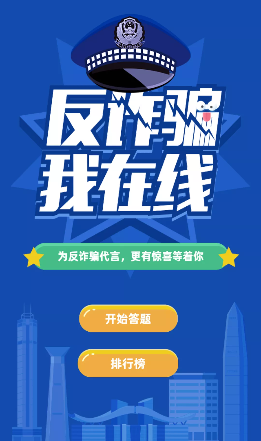 當(dāng)天“反詐騙我在線”線上答題活動正式推出,掃一掃二維碼,關(guān)注“福田警察”微信公眾號,即可參與答題,答對3題并分享反詐代言框到朋友圈,有機會獲得紅包獎勵。
