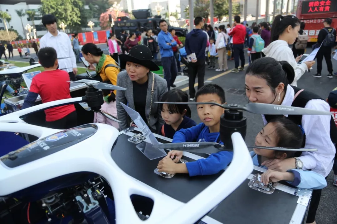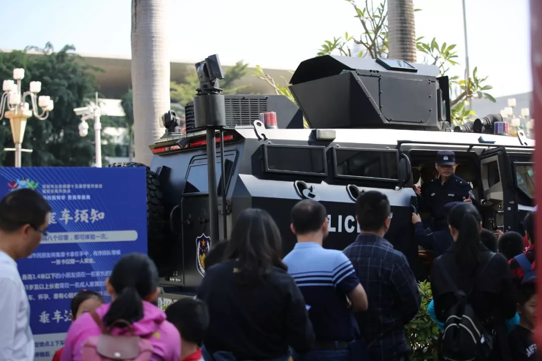 防暴頭盔、防爆盾牌、槍支警械、無(wú)人機(jī)、反恐車酷勁兒十足。大家興致勃勃地穿戴警用裝備,過一把警察癮,圓一回警察夢(mèng),做“圳”里最靚的仔!