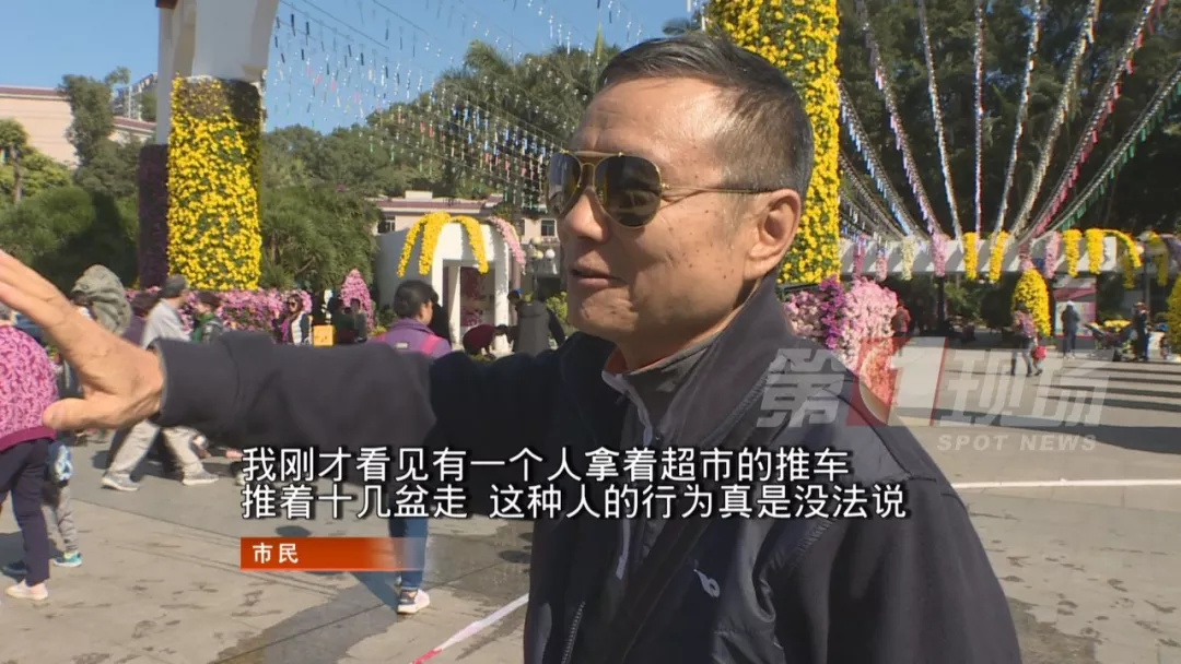 市民說,現場沒有人引導,弄得場面如同哄搶,殘花敗葉滿地,實在太不雅觀,有損形象,甚至有人推了一輛超市的推車,一下搬走了10多盆。