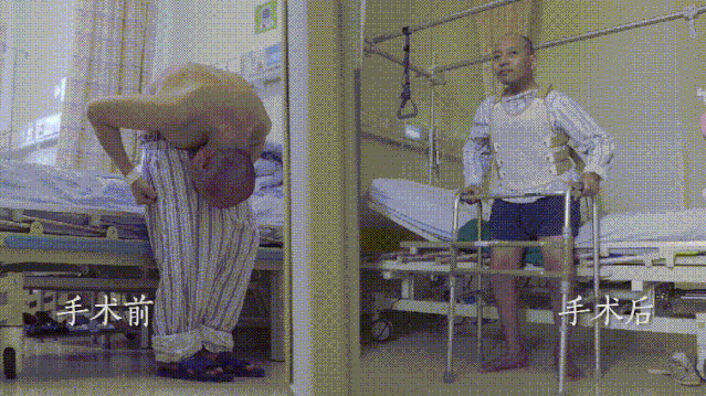 牽動全院人心的第三次手術在9月18日進行。這一步要將李華彎成C字型的脊柱拉直。手術進行了幾乎一天,醫(yī)生們找準脊椎最彎曲的兩處地方,截斷,重新拼接成直線。手術完成后當天晚上,李華20年來第一次能躺平睡覺了!