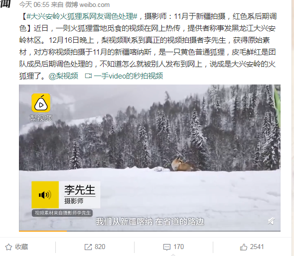 17日就被辟謠了,說(shuō)是在新疆拍的一只普通黃狐貍