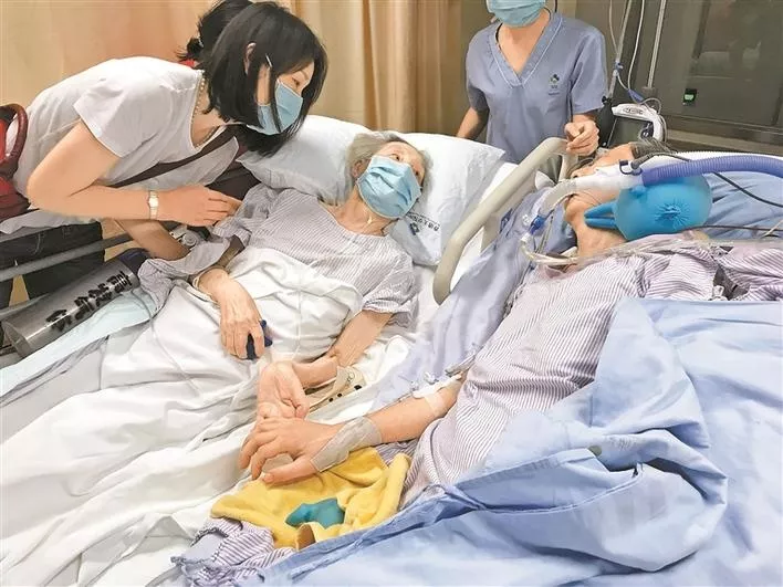 7月27日20點(diǎn)48分,香港大學(xué)深圳醫(yī)院的ICU病房里,兩位病重的老人的手握在了一起。在并排擺放的兩張病床上躺著的,是一對(duì)攜手恩愛(ài)57年的耄耋伉儷——高先生和彭女士。這兩位都已病重住院的老人,完成了或許是他們?nèi)松械淖詈笠幻?。這一幕,讓病床邊的許多親屬和醫(yī)務(wù)人員都淚流滿面。