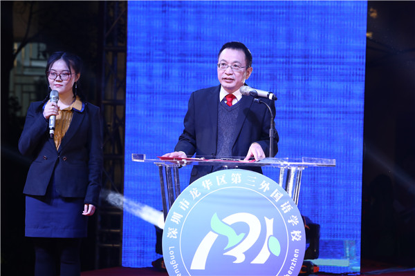 在晚會(huì)正式開始之前,聶細(xì)剛校長(zhǎng)在致辭中提到,深圳市龍華區(qū)第三外國(guó)語(yǔ)學(xué)校是一所致力于植根中國(guó)、面向世界的外國(guó)語(yǔ)品牌學(xué)校,培養(yǎng)具有中國(guó)精神、世界情懷的國(guó)際公民。同時(shí),在借力于孔子學(xué)院、立足打造書香校園、弘揚(yáng)中華民族優(yōu)秀傳統(tǒng)文化基礎(chǔ)上,借力于北京外國(guó)語(yǔ)大學(xué)、北京師范大學(xué),在全力推進(jìn)英語(yǔ)雙師云課堂。同時(shí),開設(shè)了俄語(yǔ)、法語(yǔ)、韓語(yǔ)等小語(yǔ)種選修課,未來(lái)還將開設(shè)日語(yǔ)、德語(yǔ)、西班牙語(yǔ)等小語(yǔ)種,凸顯外國(guó)語(yǔ)特色品牌。學(xué)校成為全國(guó)美育名校聯(lián)盟學(xué)校,北京師范大學(xué)項(xiàng)目實(shí)驗(yàn)學(xué)校,北京外國(guó)語(yǔ)大學(xué)課題實(shí)驗(yàn)基地,泰國(guó)曼松德大學(xué)孔子學(xué)院漢語(yǔ)教學(xué)交流基地等;吸引了一大批來(lái)自清華大學(xué)、北京大學(xué)、北京師范大學(xué)、愛(ài)丁堡大學(xué)、曼徹斯特大學(xué)、西班牙武康大學(xué)等國(guó)內(nèi)外知名高校的優(yōu)秀人才加盟。學(xué)生舞蹈團(tuán)首次登上2020年廣東省少兒春晚的舞臺(tái)。在第五屆深圳教育改革創(chuàng)新大獎(jiǎng)評(píng)比活動(dòng)中,榮獲“2019年度家校共育典范學(xué)?!?。