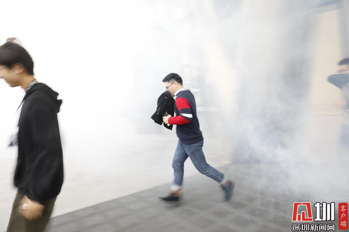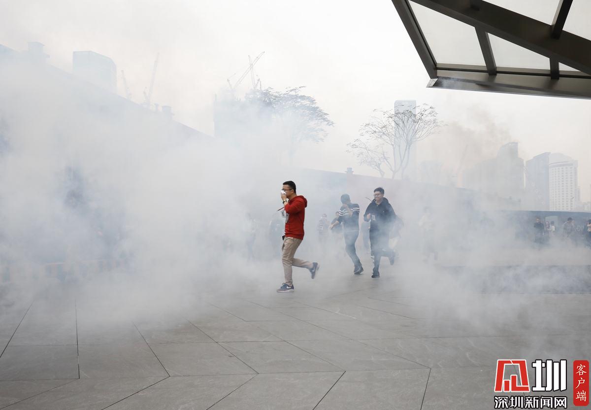 演練開(kāi)始后,模擬中國(guó)華潤(rùn)大廈24層因電氣線路發(fā)生短路,突發(fā)火災(zāi),火勢(shì)迅速蔓延。此時(shí)正值上班高峰期,樓內(nèi)有大量辦公人員需要疏散救助,情況十分緊急?!盎馂?zāi)”警報(bào)拉響后,大樓內(nèi)部的微型消防站和技術(shù)處置隊(duì)進(jìn)行先期處置。深圳市消防救援支隊(duì)同時(shí)快速調(diào)派特勤、南山、寶安、福田等大隊(duì)48輛消防車、230余名消防員到場(chǎng)處置,并聯(lián)動(dòng)應(yīng)急管理、交警、醫(yī)療、水務(wù)等部門(mén)到場(chǎng)協(xié)同處置。消防救援人員“逆行”深入起火建筑,疏散樓內(nèi)5200余名群眾,同時(shí)按照“以固為主,固移結(jié)合”的戰(zhàn)術(shù),利用水槍、水泡、滅火機(jī)器人、滅火無(wú)人機(jī)、舉高消防車、投彈式高層建筑干粉消防車等壓制火勢(shì),最終成功將“大火”撲滅。
