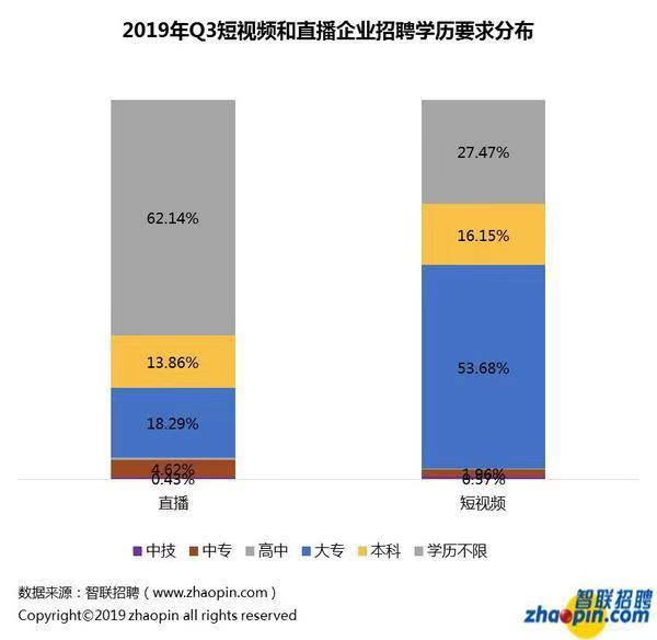 短視頻工作對人才學(xué)歷要求高于直播
