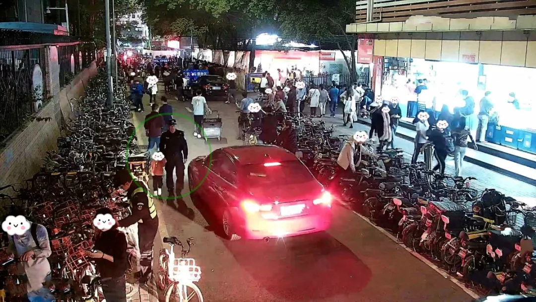 聽完男孩說的話,民警黃羽翹判斷男孩的父母可能就在這附近的市場上班,便帶著男孩進入了附近的手機市場逐個樓層詢問,可惜接連走了幾個市場,都沒有線索。期間黃羽翹詢問了值班室,但也沒有接報尋找走失小孩的警情。