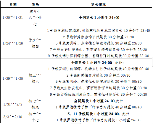 深圳地鐵“春運模式”即將啟動,春節(jié)7天延長營運時間1小時