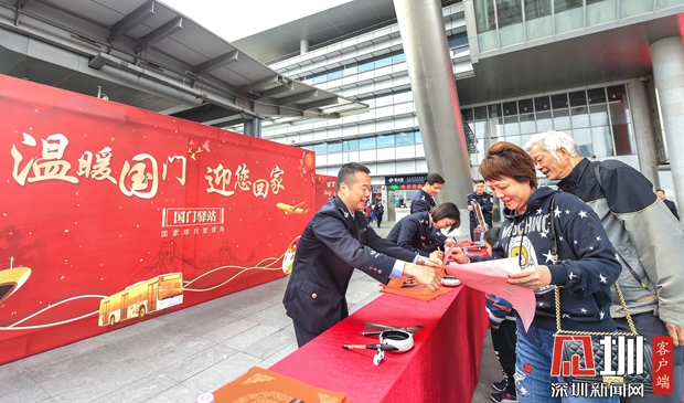 見圳客戶端·深圳新聞網(wǎng)2020年1月22日訊(見圳客戶端、深圳新聞網(wǎng) 記者 張玲 通訊員 劉姝夢)巍巍國門彰顯大國風范,涓涓暖流展現(xiàn)為民情懷。不辭風雪的歸鄉(xiāng)路上,國門——就是您的第一道家門。根據(jù)國家移民管理局統(tǒng)一部署,2020年1月17日至2月1日,深圳邊檢總站積極開展“溫暖國門迎您回家”主題活動,在各口岸出入境現(xiàn)場設(shè)置“國門驛站”,擺放“國門同框”合影墻、“家國情懷”留言板,點綴體現(xiàn)中國年的傳統(tǒng)文化元素表達祝愿,著力提升廣大出入境人員特別是歸國返鄉(xiāng)人員的獲得感、幸福感和歸屬感,各口岸沉浸在濃濃的年味里。