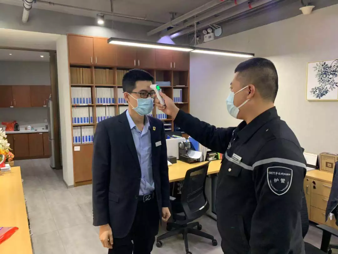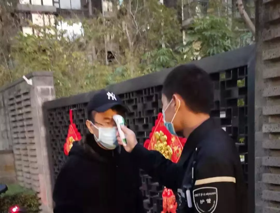 對車輛和人員出入取消刷卡自動開閘,改為手動出入開閘,禁止外來人員出入;門口、車道崗配備測溫儀,對所有進(jìn)出小區(qū)人員進(jìn)行體溫測量,并做好登記。