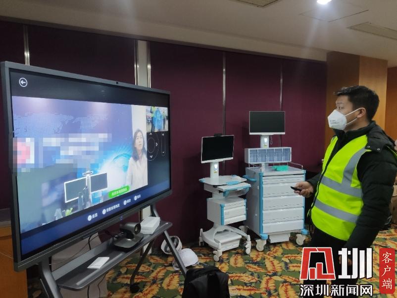 1月31日晚,經(jīng)過(guò)半天緊急協(xié)調(diào)和安裝,遠(yuǎn)程會(huì)診系統(tǒng)調(diào)通 (華為供圖)