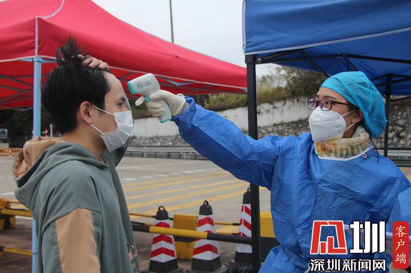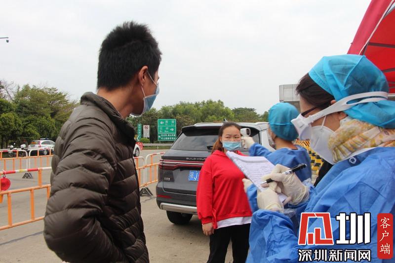 據了解,今年春節(jié)約有1500萬人離深返鄉(xiāng),目前已有500萬人回到深圳,還有近1000萬人將返回深圳。2日下午,記者在現場看到,南頭收費站僅開放了三條車道。每條車道分別設有2名志愿者,一名負責協(xié)助交警測量體溫,并檢查車內乘載人數,另一名負責登記車輛及人員信息。