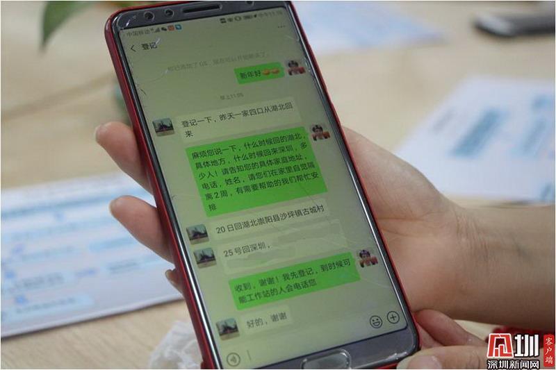 一名湖北籍返深住戶向吳麗報備返深情況。