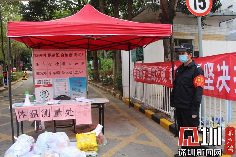 福田梅山苑小區(qū)門口設(shè)有體溫測(cè)量處。