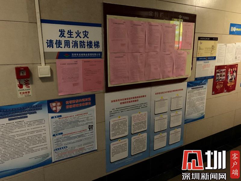 龍華龍悅居三期每一棟兩個(gè)單元樓下都貼有相關(guān)疫情通知和告示。
