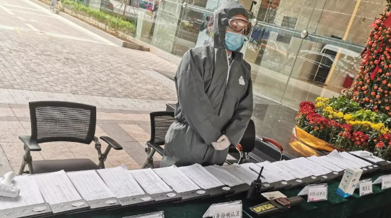 2月9日下午,記者來到梅林街道山水居小區(qū)實(shí)地探訪。進(jìn)入小區(qū)前,所有進(jìn)出人員都必須量體溫,正好來此調(diào)研的福田區(qū)委副書記黃曉鵬也不例外。