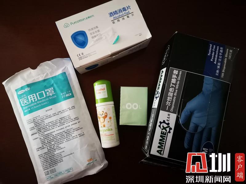 家住福田,在羅湖上班的丘小姐今天也開始了他的復(fù)工第一天,為了在路上做好防護,她準(zhǔn)備了一次性雨衣、鞋套、手套及眼鏡,當(dāng)然口罩必不可少,她還隨身攜帶了含有酒精的免洗洗手液,以備接觸了可疑物品之后能馬上自我消毒。