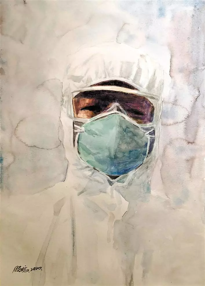 魯文詠在詩(shī)歌《最美的人,你看不見臉》中寫道:“最美的人,你看不見他們的臉。他們的臉被口罩遮著,被護(hù)目鏡遮著,被防護(hù)服遮著,有時(shí),也被夜色遮著。他們?cè)谌巳豪锎┬?,在焦灼的企望的目光里穿行。他們?lái)了,他們穿過(guò),焦躁的人群就安靜下來(lái)。最美的人,你看不見他們的臉,看不見年齡,甚至性別。是的,天使不計(jì)年齡,天使不分性別?!?/p>