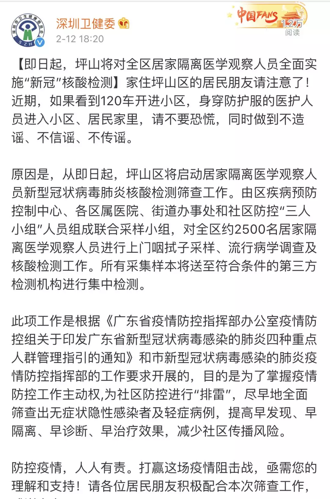 徹底“排雷”!深圳免費為所有居家隔離者檢測“新冠”病毒核酸