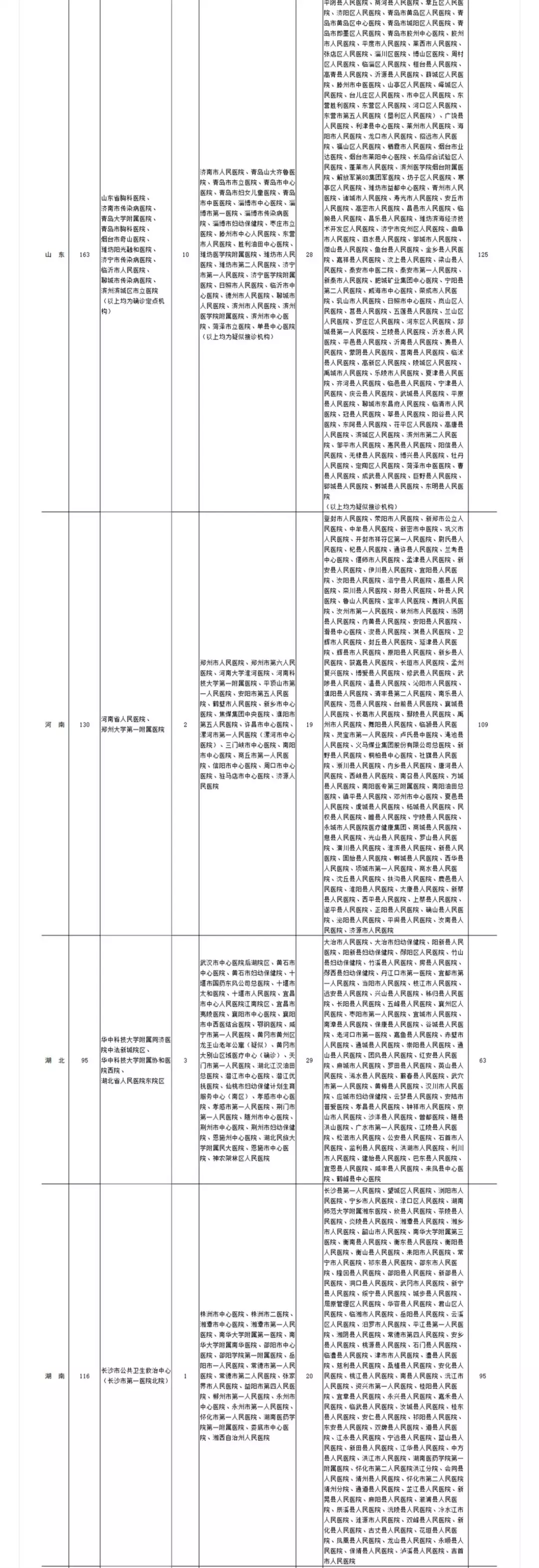各省(區(qū)、市)新型冠狀病毒感染疑似或確診孕產(chǎn)婦產(chǎn)檢和住院分娩定點醫(yī)院(截至2020年2月11日)
