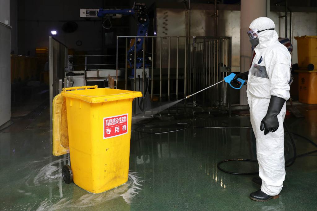 "醫(yī)療廢物的焚燒處置需要經(jīng)過一燃室950°C高溫、二燃室1100°C高溫,焚燒約30分鐘,才能達到無害化處置。"工作人員向深晚記者介紹,整個處置流程中,處置中心最大限度使用自動設備。與其他醫(yī)療廢物處理方式不同的是,涉及新型冠狀病毒的醫(yī)療機構(gòu)必須貼上"高度感染性廢物"標識。處置全程禁止打開周轉(zhuǎn)桶蓋,以此杜絕醫(yī)療廢物對員工的感染風險。