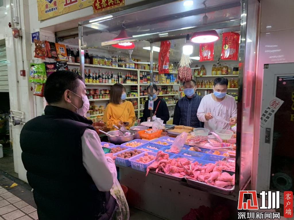 福田區(qū)新洲市場(chǎng),市民戴著口罩出街買(mǎi)菜。