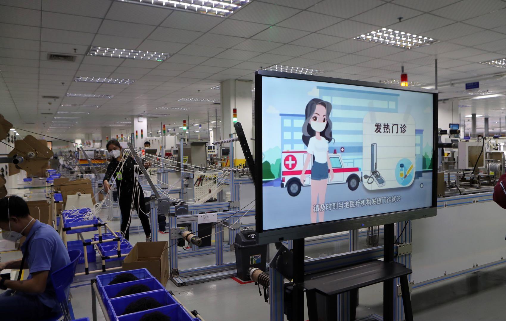 這樣的座位安排方式和擋板在員工食堂同樣可以看到。不同的是,就餐員工被嚴(yán)格分流,采取多時(shí)段少人次的方式分時(shí)段分批就餐。