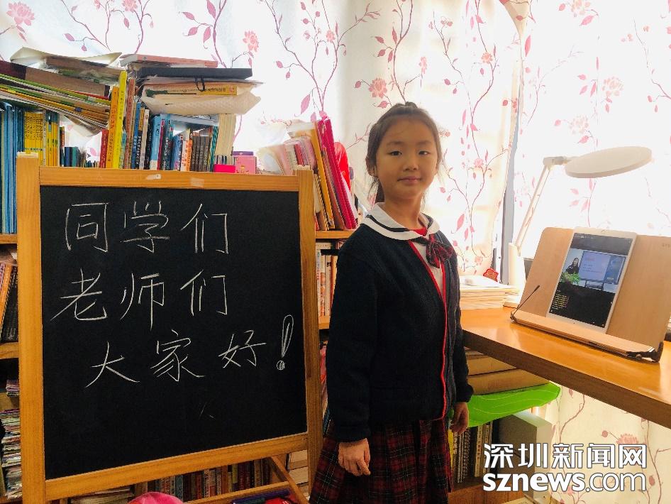 早早地,小妞要我在小黑板上寫下對(duì)老師們對(duì)同學(xué)們的問(wèn)候。還記得昨晚臨睡前,她興奮地說(shuō):“明天就能和老師和同學(xué)們?cè)诰W(wǎng)上相見(jiàn),太開(kāi)心了。”